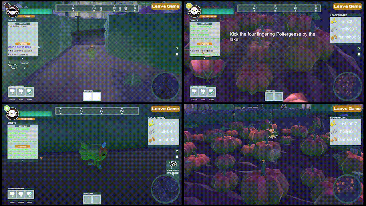 Tanked turns a peaceful aquarium into a chaotic hide-and-seek battleground. You play as a Pheesh; quirky, axolotl-inspired creatures; taking on one of two roles: hunt or hide. As a seeker, you patrol the map and complete quests to unlock faster ways to catch hiders. As a hider, you evade your former friend, finish quests, and race to the safe zone before you’re caught. Every round mixes tension, humor, and fast-paced revenge.